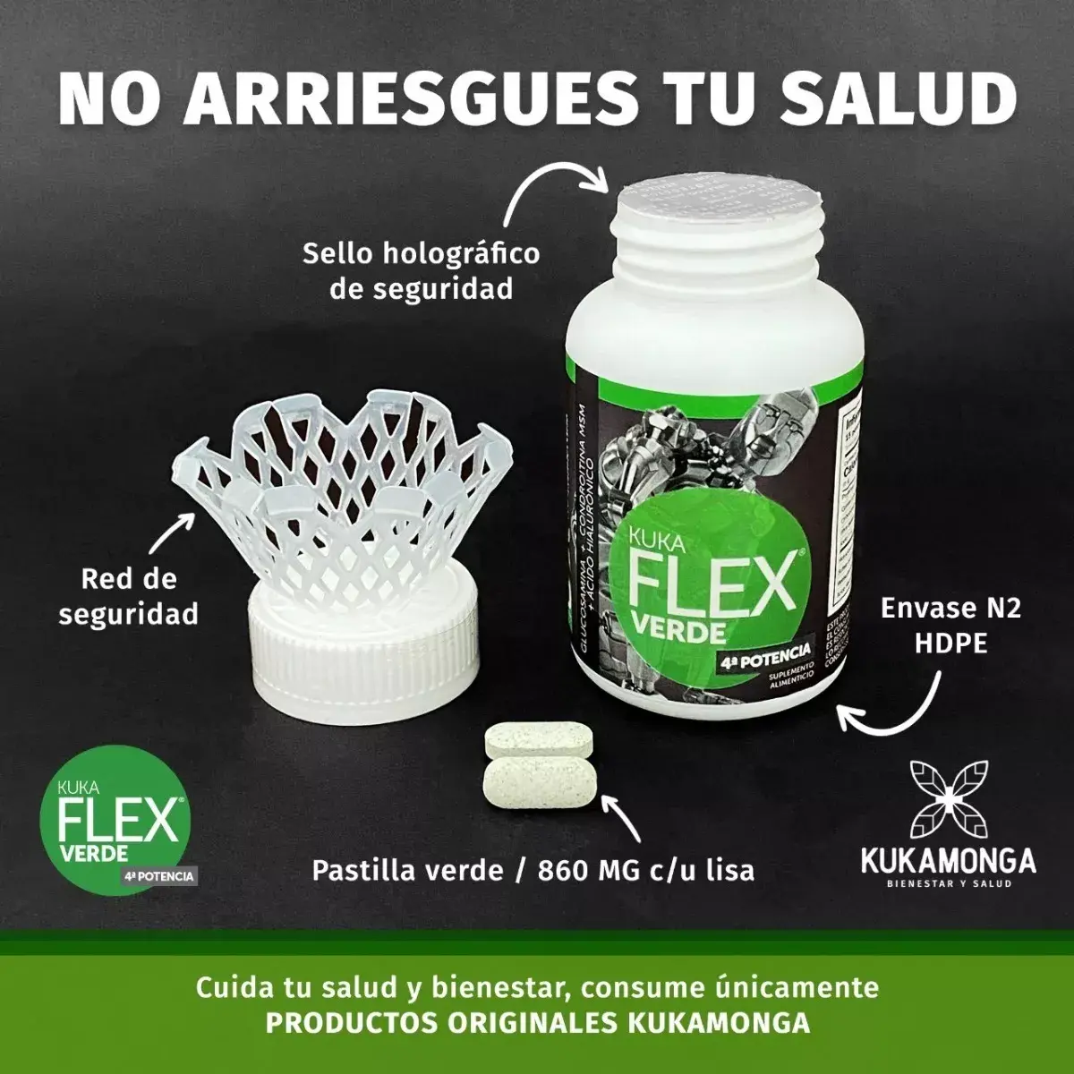 KukaFlex Verde de marca KUKAMONGA, contiene 60 tabletas 850 mg c/u.